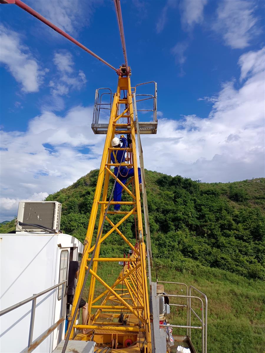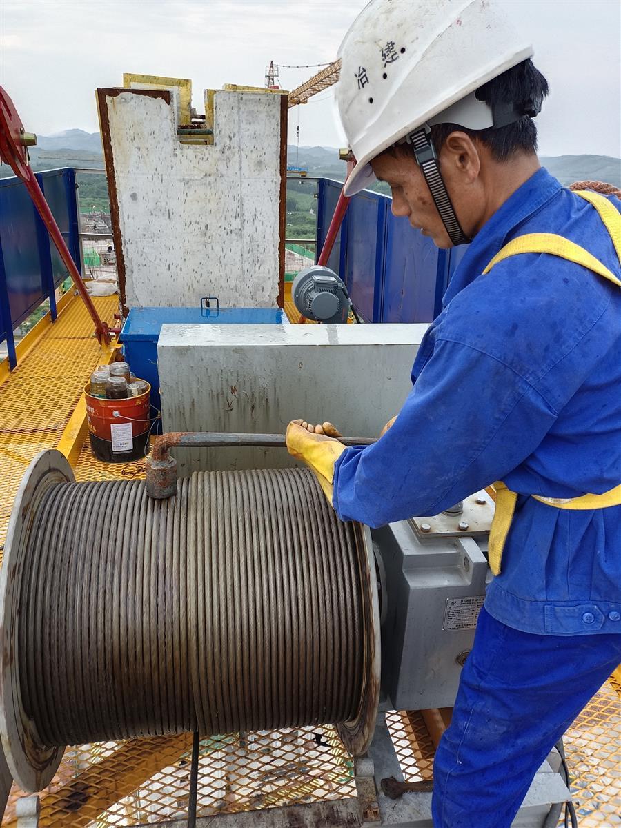 譚建平正在進(jìn)行塔吊維護(hù)保養(yǎng)作業(yè)