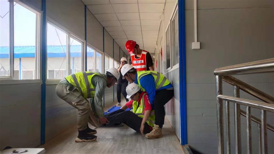活動過程中,分公司經理在項目部會議室向大家講解消防、觸電安全常識、應急救援等相關知識點,并播放了相關教學視頻。項目安全總監(jiān)介紹了滅火器材的使用,并組織進行實地滅火實物操作演習。分公司管理人員、項目管理人員和從業(yè)人員分別進行了觸電應急救援,火災人員疏散,滅火器、消防水槍使用演練。