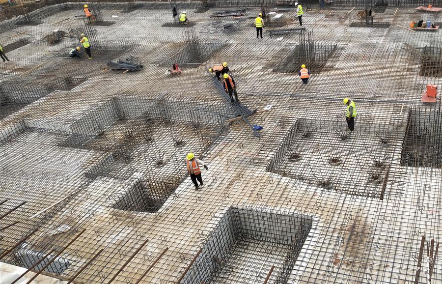 柳州磐龍府項目主體總包工程項目部計劃5月底前完成全盤所有單體主體封頂,為實現(xiàn)節(jié)點目標,項目部精心策劃,倒排工期,強化管理,火力全開,充分發(fā)揚“5+2”“白加黑”連續(xù)作戰(zhàn)精神,全力推進項目建設(shè)進度。目前,7棟18層住宅形象進度為完成主體7至11層,12棟聯(lián)排4層住宅形象進度為完成局部封頂、局部2至4層梁板施工,1棟鄰里中心進度為低跨負一層柱、剪力墻鋼筋綁扎,模板安裝。