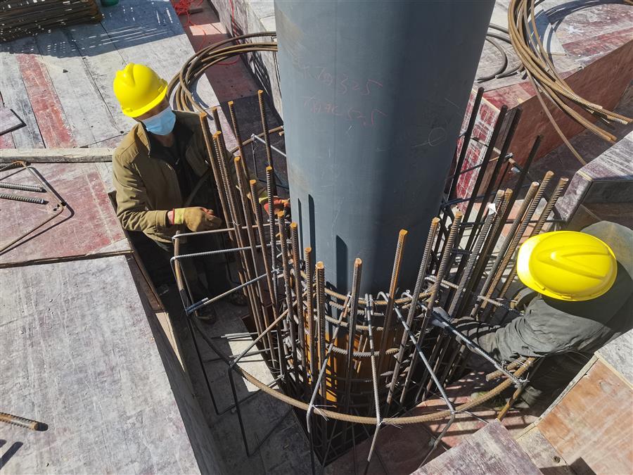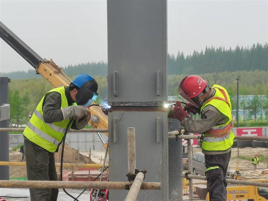 項(xiàng)目所在地受疫情影響較大,為統(tǒng)籌抓好項(xiàng)目疫情防控、安全生產(chǎn)、施工進(jìn)度等工作,項(xiàng)目部嚴(yán)格落實(shí)疫情常態(tài)化防控措施,做好日常測體溫、消毒等工作,并對項(xiàng)目進(jìn)行統(tǒng)籌規(guī)劃,根據(jù)“白+黑”“晴+雨”的天氣情況,合理安排相應(yīng)的施工任務(wù),同時加強(qiáng)吊裝機(jī)械設(shè)備的排班策劃力度,合理安排穿插作業(yè),確保工程進(jìn)度如期完成。經(jīng)過兩個月的施工,目前項(xiàng)目正在進(jìn)行第一層鋼梁安裝焊接和砌體結(jié)構(gòu)砌筑、二層鋼柱吊裝安裝等工序。