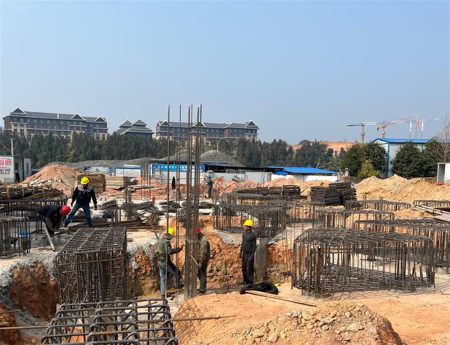 融水苗族自治縣安陲鄉(xiāng)江門村鄉(xiāng)村振興產(chǎn)業(yè)園項(xiàng)目總建筑面積約8420平方米。項(xiàng)目建設(shè)內(nèi)容包括:園區(qū)標(biāo)準(zhǔn)廠房建設(shè)及道路工程、場(chǎng)地平整、雨水、污水、給水、室外電氣及室外綠化工程;廠房結(jié)構(gòu)形式為框架結(jié)構(gòu)。目前,項(xiàng)目1#廠房二層磚墻砌磚40%;4#、5#廠房外墻磚砌筑90%;7#廠房主體結(jié)構(gòu)屋面鋼筋綁扎完成。