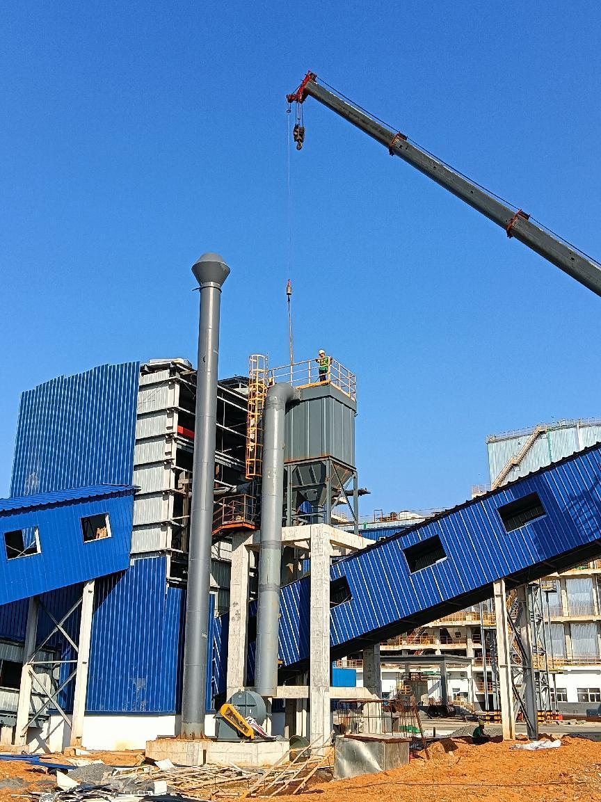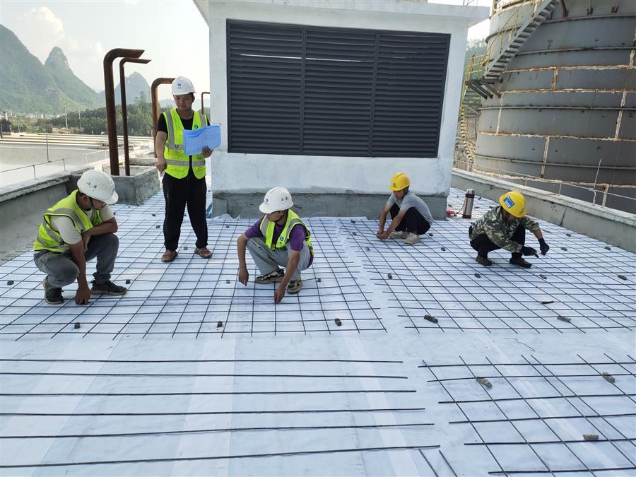 融安縣生活垃圾焚燒發(fā)電項目工程總承包項目,工人正在進行汽機間屋面鋼筋網綁扎。