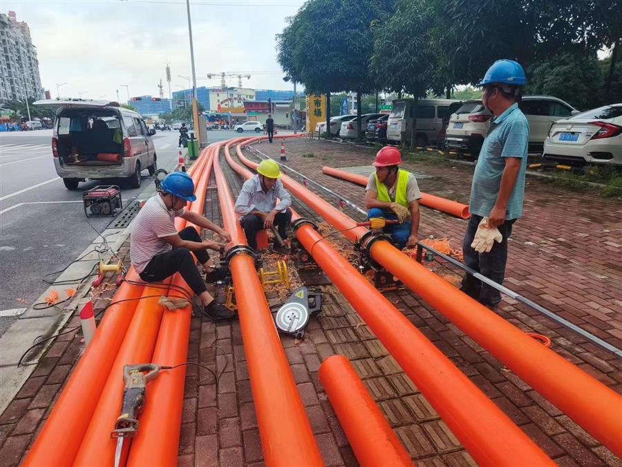 鹿寨縣城南新區(qū)城中村改造項目設計-采購-施工(EPC)總承包項目,工人正在對室外道路鋪設瀝青。