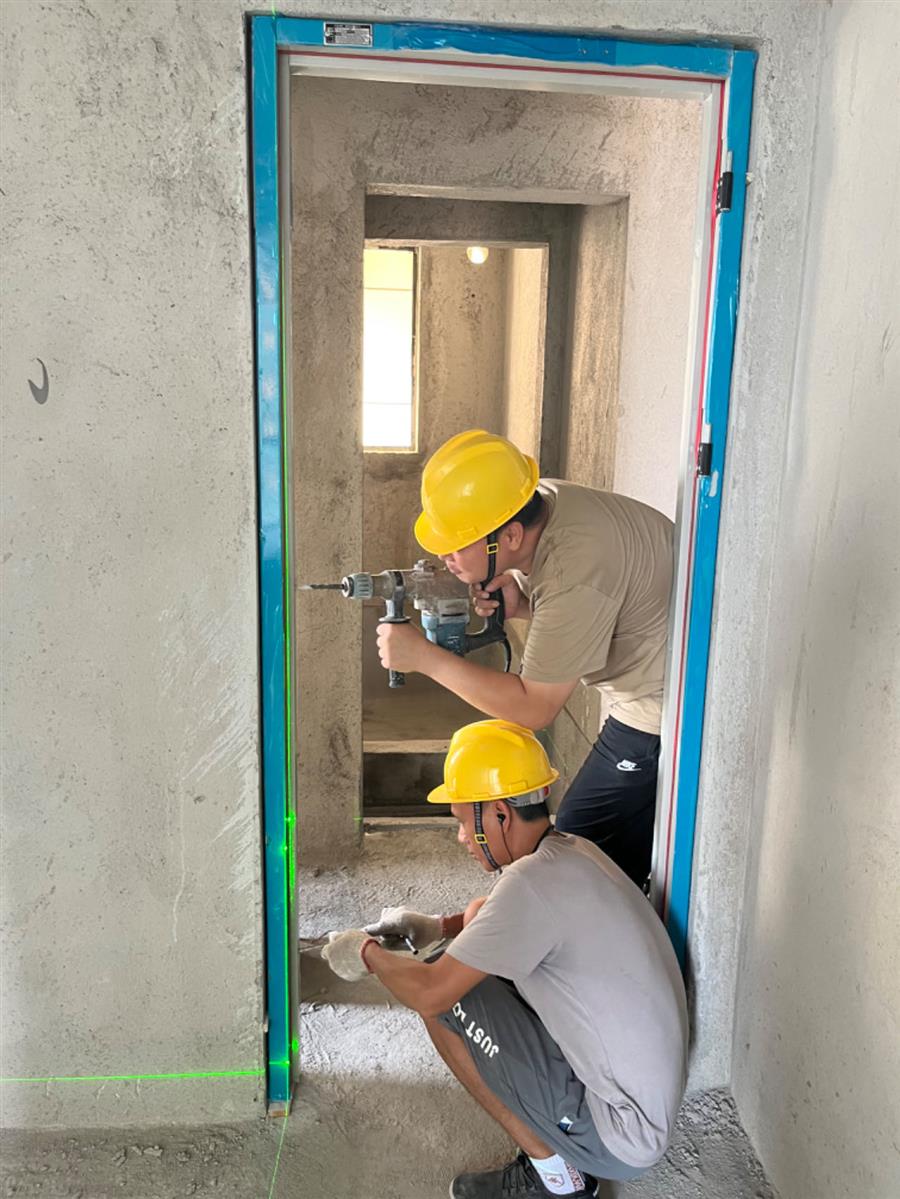 在項(xiàng)目現(xiàn)場(chǎng),工人們頂著烈日?qǐng)?jiān)守崗位。鋼筋綁扎工人一手固定住鋼筋,一手熟練地把鋼筋綁扎好;電焊工人“全副武裝”,一手舉著防護(hù)面罩,一手拿著焊槍嫻熟作業(yè);抹灰工人飛舞著抹灰刀,熟練地向墻面抹水泥砂漿;安裝工人操作電鉆將門(mén)窗穩(wěn)穩(wěn)地安裝到位……熱火朝天的大干現(xiàn)場(chǎng)依然井然有序。