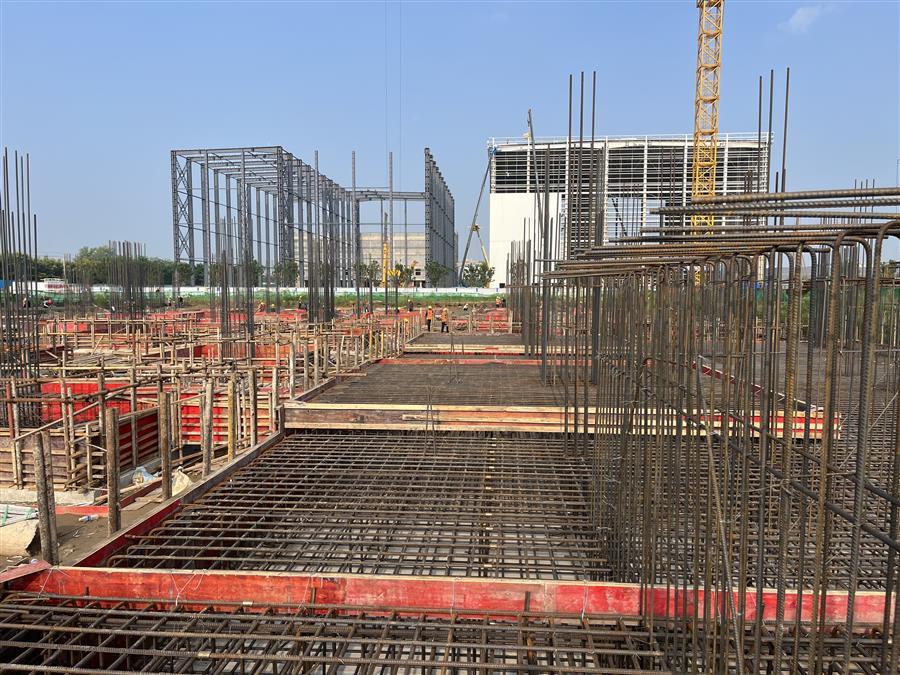 為確保項(xiàng)目建設(shè)順利開展,項(xiàng)目部制定科學(xué)的施工方案,合理安排施工時間,認(rèn)真抓好安全生產(chǎn)工作,嚴(yán)把質(zhì)量關(guān)。目前,項(xiàng)目已完成了3#高標(biāo)庫基礎(chǔ)混凝土墊層、4#分揀中心及6#冷庫的 CFG 樁、2#分揀中心基礎(chǔ)混凝土墊層等施工內(nèi)容,2#高標(biāo)庫基礎(chǔ)擋墻鋼筋綁扎已完成100%,模板安裝已完成70%。